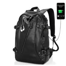 Cheap - Gmilli Men External USB Charge School Bag PU Leather Waterproof Travel Bag Casual Backpack 15.6 Inch Laptop Rucksack Very Good